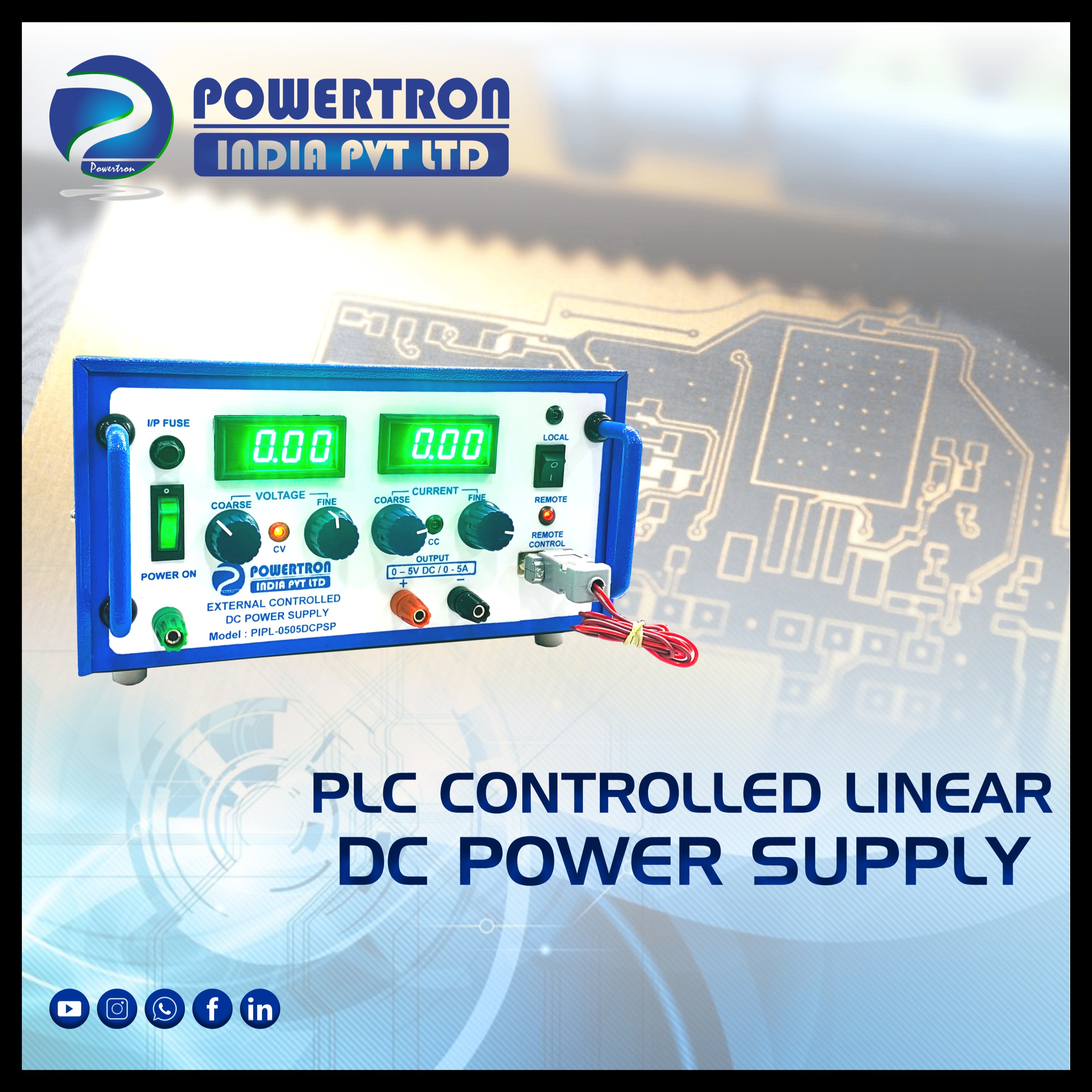 Powertron PLC-Controlled Linear DC Power Supply ensures stable and efficient power delivery. Perfect for industrial automation and testing applications!